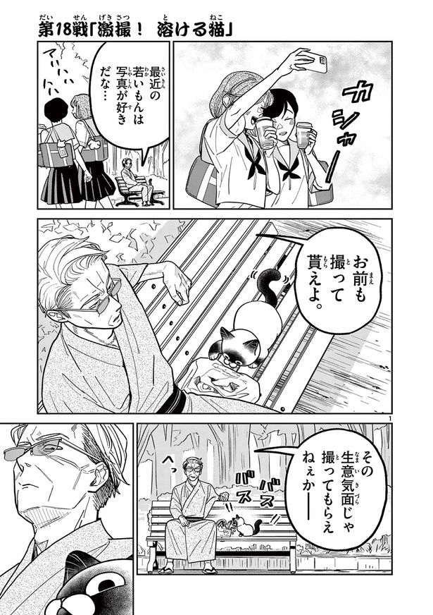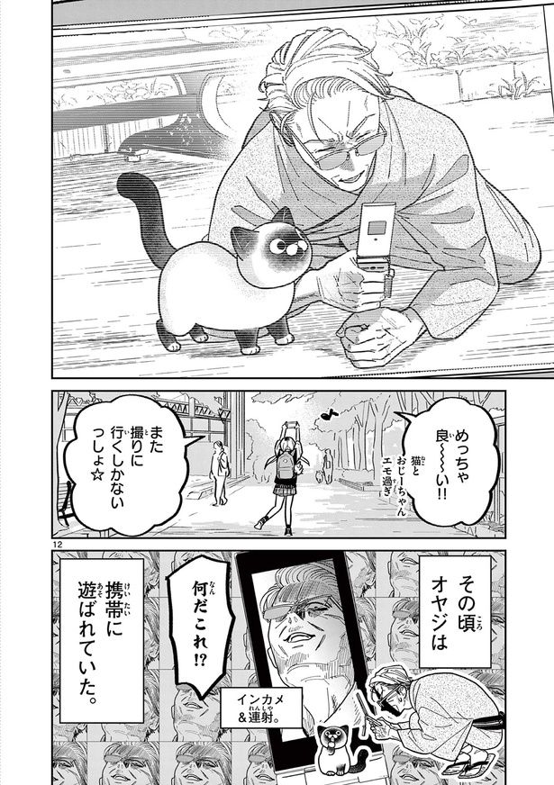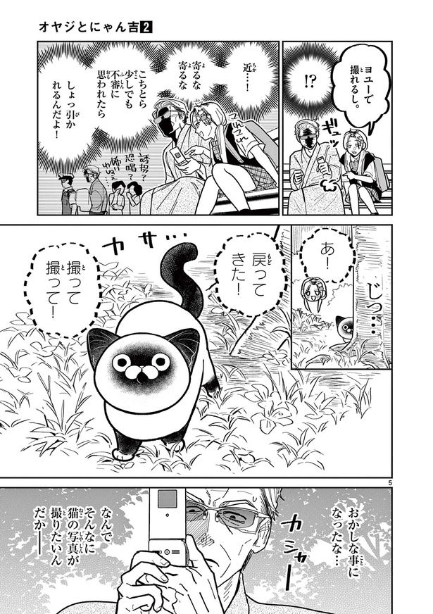 3. 顔を撮らせてくれない例の猫。通りすがりの若者と一緒に、携帯での撮影を試みる/オヤジとにゃん吉⑱