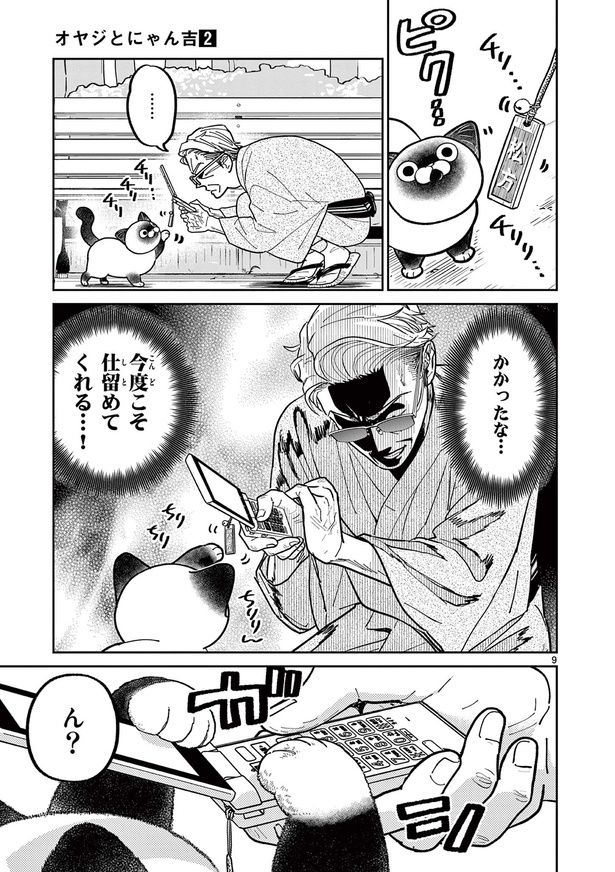 かつてやくざ同士の抗争に終止符を打った伝説の極道・松方久秀。平穏を取り戻したのち年を重ねて組長を引退するが、平穏な日々は彼には張り合いがなく、とても暇なものだった。そんな松方の心に火を付けたのは、たった1匹の虚無顔の野良猫。「にゃん吉」と命名された野良猫は自由奔放で、堅物な松方の常識を覆すばかり。果たして松方は、にゃん吉との抗争に打ち勝つことができるのか……!? 元極道のオヤジ×猫の日常を描いたドタバタふわふわコメディー『オヤジとにゃん吉』をお楽しみください。
