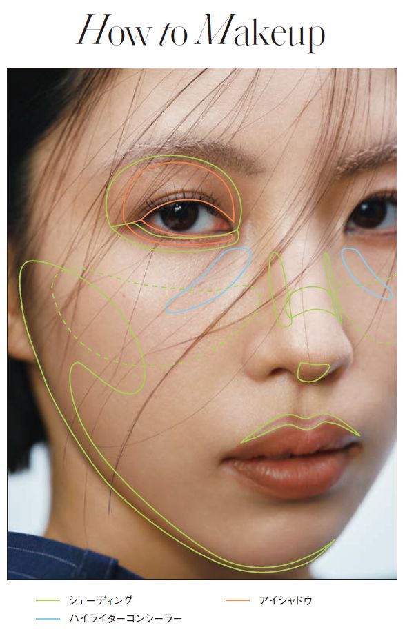 肌を部分的に明るく見せることで立体感がアップするハイライターコンシーラー。目頭から斜め下へ、1本の線を引く。顔の中央に仕込んだ“一筋の光”は、クマのカモフラージュに効果的!