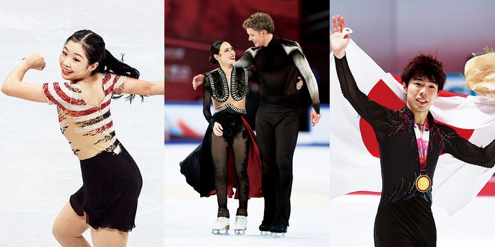 男子シングル界は今季も世界王者イリア・マリニン選手の圧倒的な強さが際立ちます。フランス大会で優勝後、カナダ大会ではFSで4回転を6本跳んで歴代最高得点を塗り替えファイナル進出を軽くクリア。その圧巻のFSは、エレガントな衣装も評判です。細かいプリーツが入ったふんわりスリーブや胸元にキラキラがついた王子風スタイルが、かつての優雅なフィギュアスケート時代を思わせてくれることが人気のようす。 素敵な衣装ならアイスダンスの世界王者、マディソン・チョック&エヴァン・ベイツ組も。今季のFDでは闘牛士を思わせる衣装を女性が着こなし、長い裾を巧みにさばきながらキレキレの演技を見せます。プログラム作成には、世界的フラメンコダンサーのアントニオ・ナハーロさんがチームに参画したそう。ここいちばんの大舞台に映えること間違いなしの力作です。