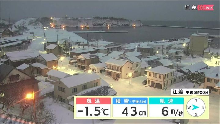 雪が少ない地域ですが、積雪は43センチで平年の3倍以上と多くなっています。道南では記録的な大雪になりました。