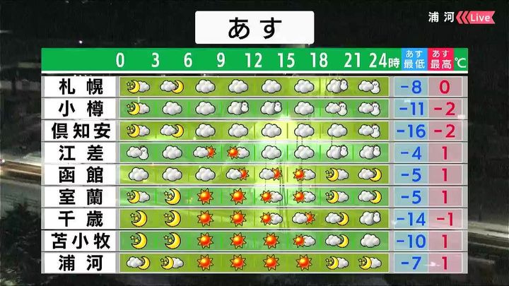 ・あすの札幌の朝昼晩の天気