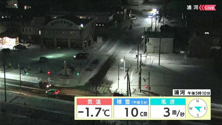 背景は29日午後5時ごろの浦河情報カメラ