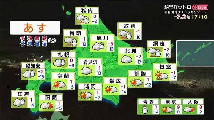 ・あすの北海道の天気と気温