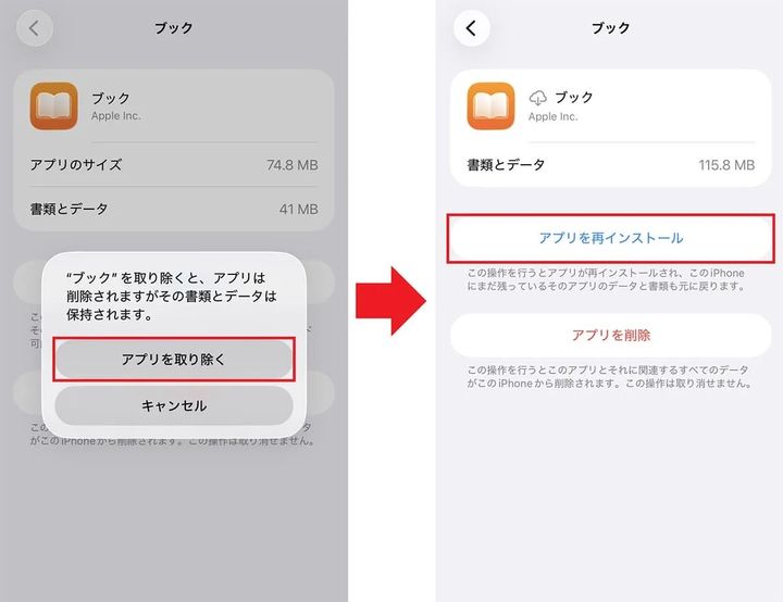 もし後で必要になっても、AppStoreから再インストール(復元)が可能です。また、「アプリを取り除く」機能を使えば、データは残したままアプリ本体だけを削除することもできます。