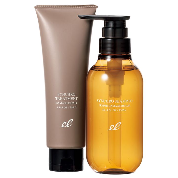 【第2位】ELECTRON シンクロシャンプー ファム & トリートメント ダメージリペア 左 180g ¥3,080 、右 300㎖ ¥3,740(ともにエレクトロン)