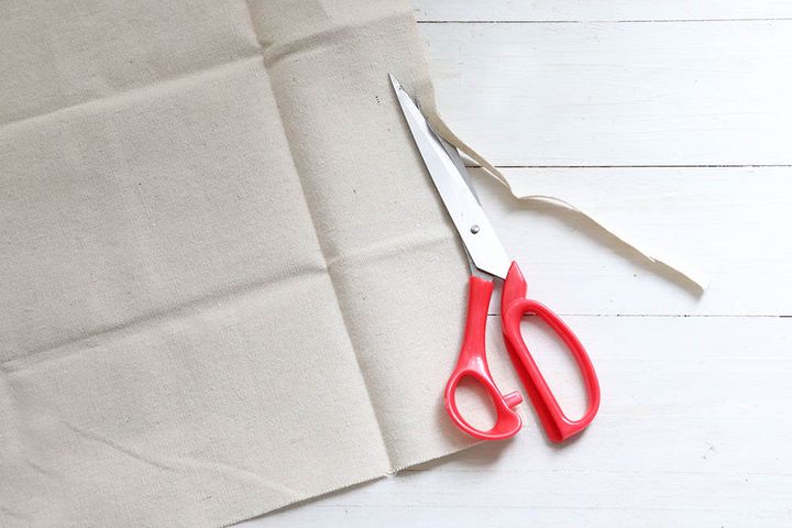 まずは、ハギレとハサミを用意。ハギレを細くカットして、リボンを2本作ります。