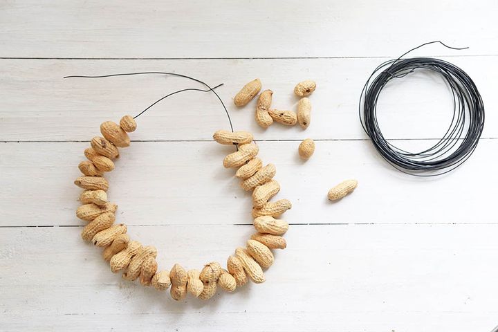 針金はカットせずに使います。落花生をある程度通して長さを把握してから、針金をカットすると、作業がしやすいです。