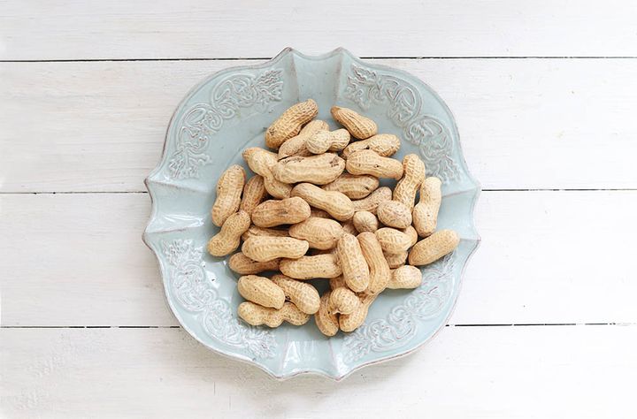 殻つき落花生の割れ目のところに穴をあけてしまうと、全体が割れて開いてしまうので、要注意です。