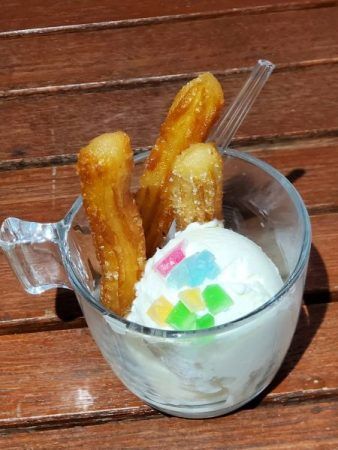カタルーニャ風 陽だまりのスープはジャガイモとひよこ豆をメインにしたサフラン風味のスペイン風のスープ。カサ・バトリョのチュロス&アイスは、スペイン発祥の焼き菓子、チュロスにアイスクリームを添えたスイーツです。 アートギャラリーになっている店内では美術作品を楽しみながら飲食が出来ます。