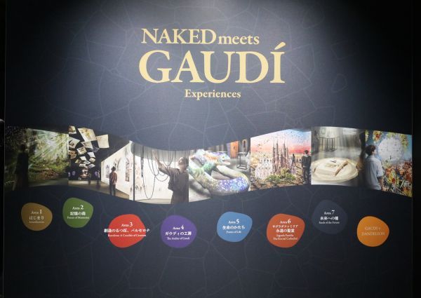 展示エリアは、Area1:はじまり、Area2:記憶の森、Area3:創造のるつぼ、バルセロナ、Area4:ガウディの工房、Area5:生命のかたち、Area6:サグラダ・ファミリア 永遠の大聖堂、Area7:未来への種、Area7:GAUDI×DANDELION(すべて©NAKED、以下同様)で構成され、各エリアではガウディの創造の原点に迫る展示や参加型アート体験が出来ます。