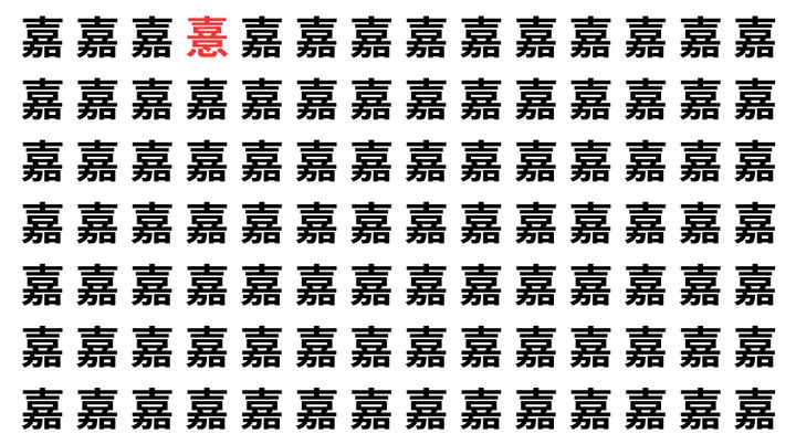 たくさんの「嘉」の中に、よく似た別の漢字が1文字だけ隠れています。