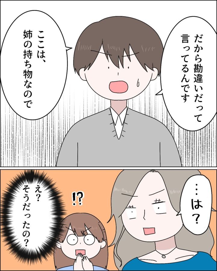 だから勘違いだって行ってるんです。ここは、姉の持ち物なので」と話す康太の言葉に、「・・は?」と目が点になる麻里さん、その隣で、「!?え?そうだったの?」と私も一緒に驚いたのでした。