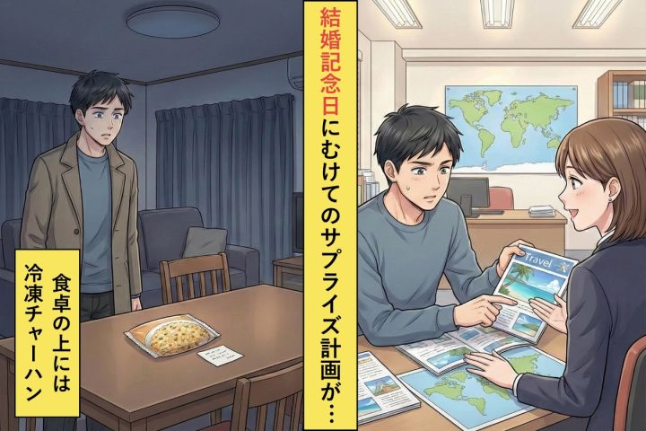 サプライズの予定がトラブルに見舞われて→結婚記念日の日、帰ってみると冷凍チャーハンが食卓に