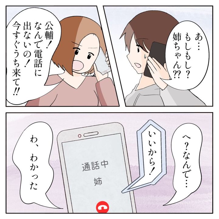 「あ、もしもし?姉ちゃん?」恐る恐るかけ直すと、間髪入れずに「公輔!なんで電話に出ないの!今すぐうちに来て」と強い口調で言われました。「へ?なんで・・・」と理由を聞こうとしても、「いいから!」の一言で一蹴され、俺は事情も分からないまま姉ちゃんの家に向かいました。
