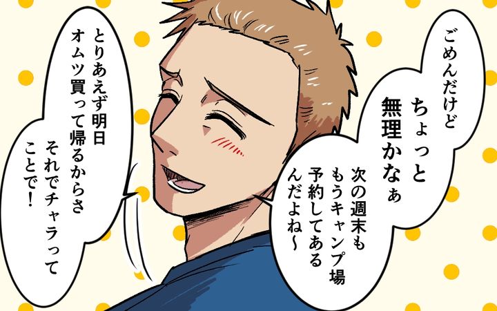3. 妻「夜泣きで寝れないから助けて…!」夫「キャンプ行くから無理かなぁ〜」睡眠時間すら交渉が必要って許されるの!?