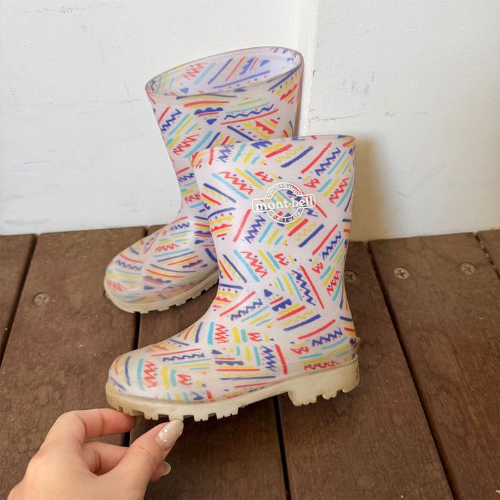 レインブーツ「親子でよく愛用している『モンベル』。高い機能性と、比較的手に取りやすい価格帯が魅力です。こちらのレインブーツは、可愛いデザインにひと目惚れ。歩きにくくなりがちなレインブーツですが、しっかりサポートしてくれる中敷が入っているので安心です。雨の日用として購入しましたが、息子がとても気に入っていて、晴れの日もコーディネートに取り入れています」