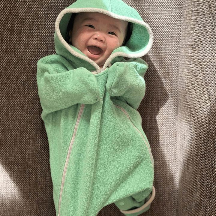 ベビーポーラーブランケット「『モンベル』は息子の出産をきっかけに買うようになりました。カバーオールは、足も手もすっぽり包めるので、小さい頃のお出かけの際によく着せていました。ファスナー仕様で着脱もラクラク♪ 子どもが大きくなってきた今は、足元は折り返さず靴下を履かせて使っています。お出かけのときや抱っこ紐のときのアウターとして活躍中。次はポケッタブル ベビーキャリアが気になっています」
