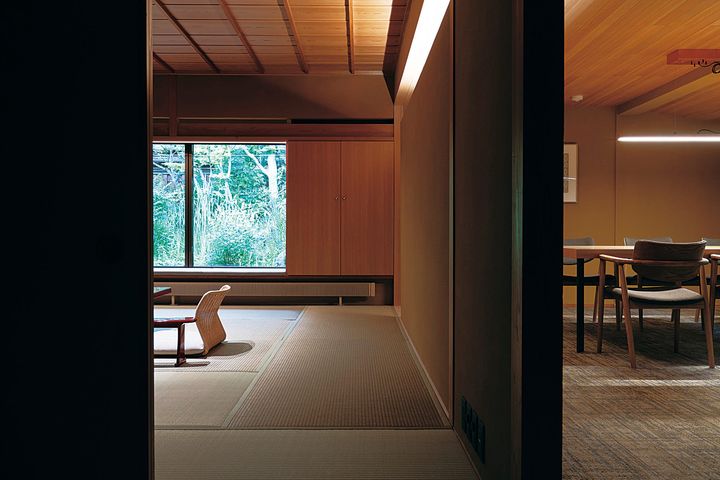 離れ中心のゆったりとした客室で、団らんのときを過ごせる「名月荘」。和やかな空間と行き届いたホスピタリティにファンが多く、リピート率は65%を超えるそう。若女将の菊池成湖さんは、「一流のものに触れているお客さまとのお話から、おもてなしのヒントをいただくことも多々。宿として新しいことを始めたり、何か変えようとするときはいつも、お客さまの顔が浮かぶんです」と語ります。