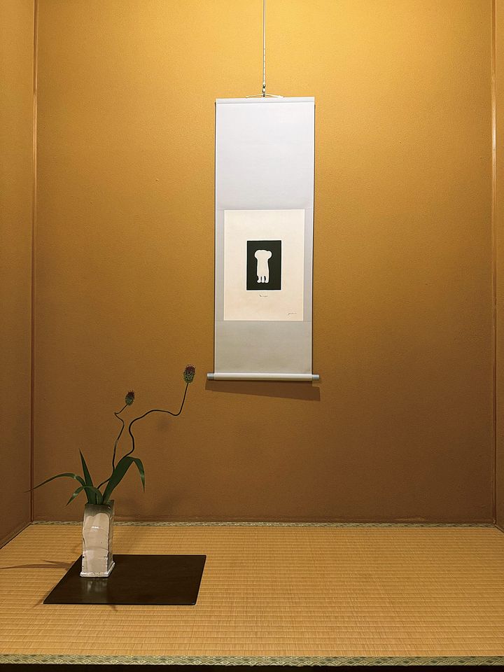 掛け軸として客室にしつらえるなど、地域の作家による作品を随所に。「アーティストが育つ場所にもできたら」。 Hearst Owned