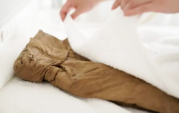 1.ネットに入れる:ダウンを畳んでネットに入れ、摩擦を防ぎましょう。
