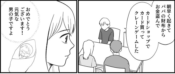 ハヤトは、早朝に夫の財布から1万を盗み、父の日のプレゼントを買うと言って出かけ、カードショップでカードを買い、余ったお金でクレーンゲームをして遊んでいたのだそう。表情をなくし、淡々と話し続けるハヤトを見つめながら、今までの頑張り屋さんのハヤトが走馬灯のように思い浮かびました。