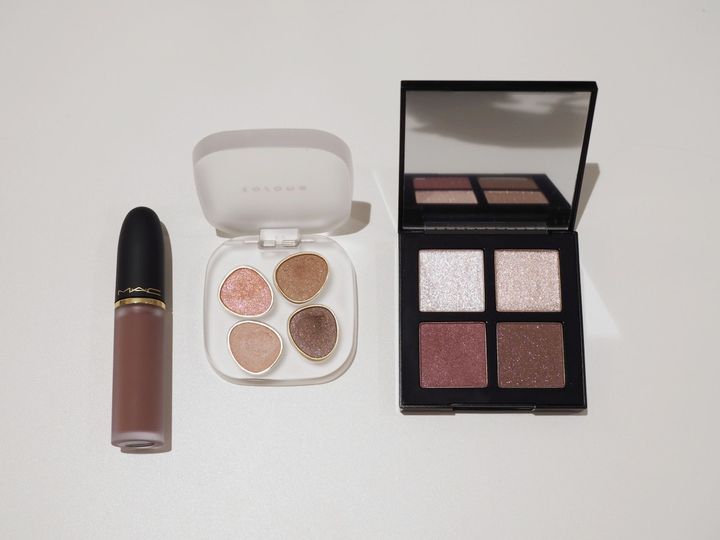 よしかわ:混ぜる割合によってアプローチが変わるから、使いこなしたいという思いも込めて選びました。そして、赤みが消えたら一番に使いたいと思っていたのが淡くぽわっと発色のチークだったので、shu uemuraの「3D チークメイト ラベンダー ソルベ」のラベンダーカラーとETVOSの「ミネラルプレストチーク ミュートペール」をセレクトしました。淡いトーンでやわらかい印象に仕上げたいですね。