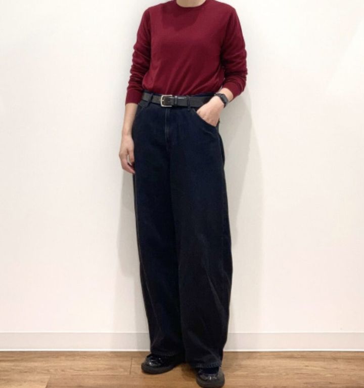 「履くだけでスタイルが良く見える」と圧倒的な支持を得ているのが、タックワイドパンツです。このパンツの凄みは、計算され尽くした「落ち感」と「立体感」の両立にあります。