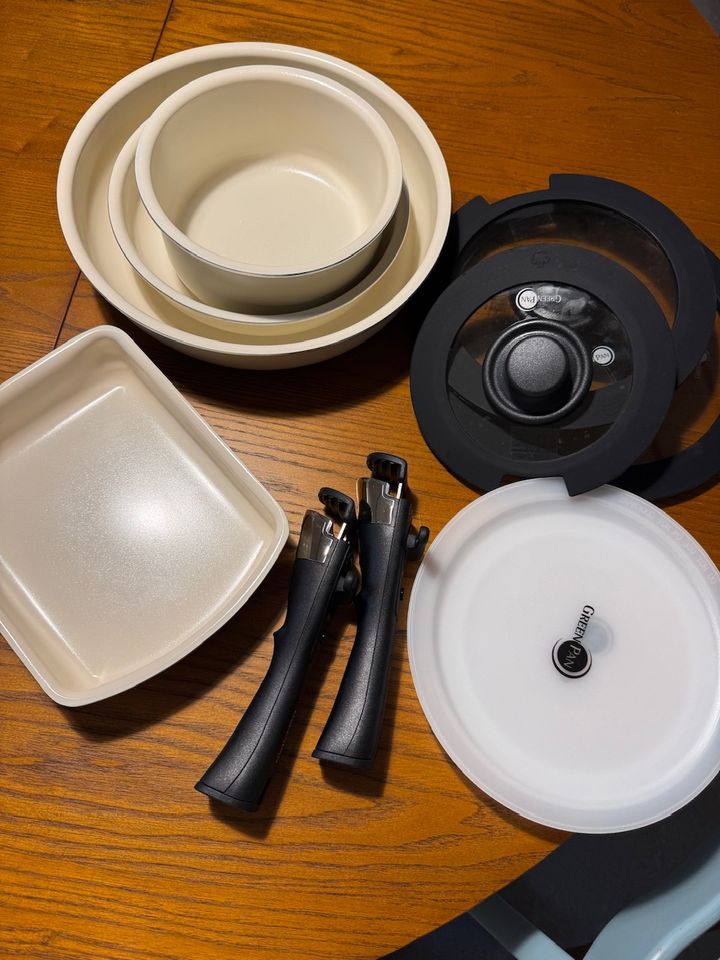 そんな私が今回購入した【グリーンパン】何が良いかというと・PFAS・PFOS・亜鉛フリー・フッ素樹脂不要・特許取得のセラミックコーティングこのセラミックコーティングのおかげで、加熱しすぎても傷がついても毒性のあるガスは発生しないんです!私は、福袋セットの14点セットを購入♡大きめのフライパン、小さいフライパン、小さめの鍋、着脱ハンドル2個