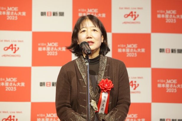 「ドイツ語文学の翻訳をしている者なので、このような賞をいただけるとは思っていませんでした。ある時から絵本を翻訳したいと思い、ドイツで買った絵本を出版社に持ち込んだりしていましたが、出版社自体が絵本を扱っていないようなこともあり、どうやったら絵本を訳せるんだろうと思っていた時期もありました。『モモ』は50年以上前に書かれた本ですが、今回は原作とはまたちょっとテイストが違う絵をシモーナ・チェッカレッリさんが描いてくださり、それをたくさんの方が読んでくださったことに感謝しています」(松永美穂)