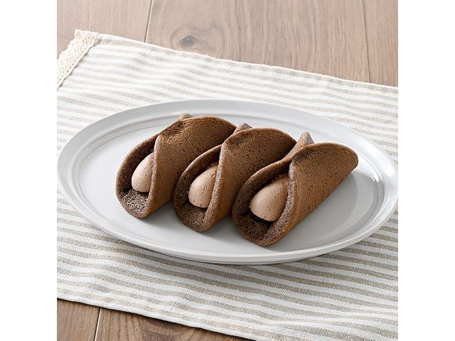 チョコクリームとチョコホイップをオムレット形状にサンドした、パンケーキ3個入りです。 ※宮崎県、鹿児島県では取り扱いがございません。