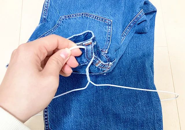 用意するのは、ジーンズとハンガーです。