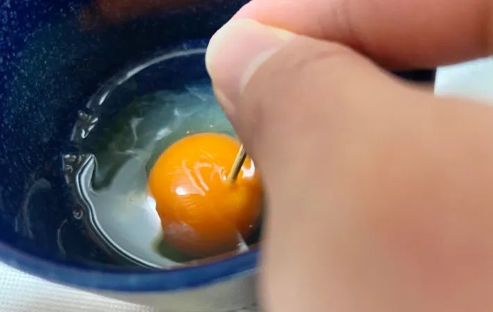 卵黄に、つまようじなどで数か所穴を開けましょう。