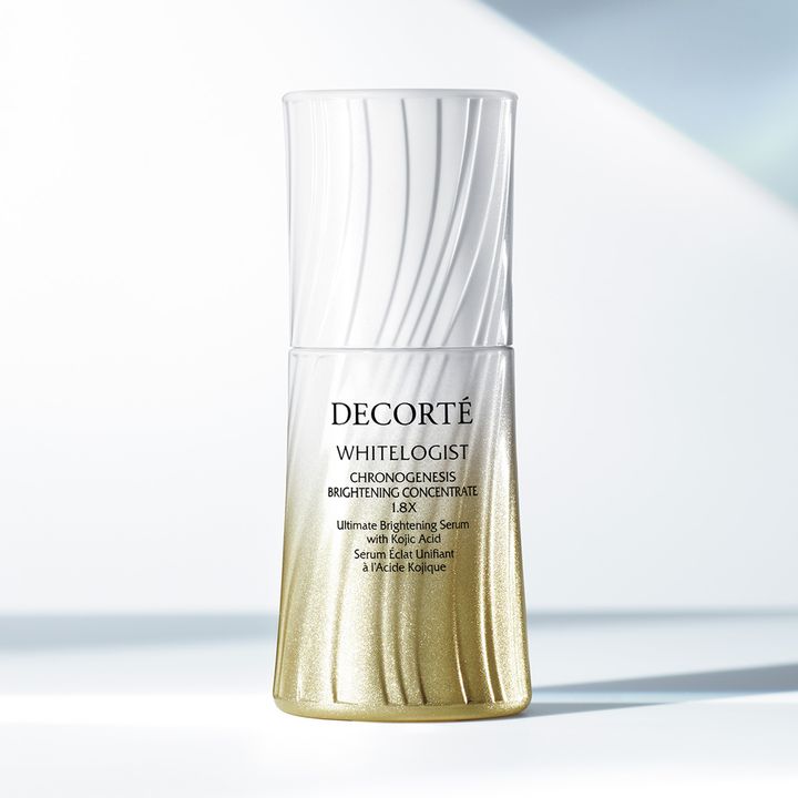 年が明けたらそろそろ美白ケアの準備です。強力な新製品が続々登場するなか、まず注目したいのは美白成分の王道・コウジ酸。1907年発見、1988年に美白有効成分として正式に認可。それ以降も表皮メラノサイト(シミの元となるメラニンが作られる細胞)への効果について研究は進み、この「ホワイトロジスト クロノジェネシス ブライトニング コンセントレイト 1.8X」は、まさにコウジ酸の新たな可能性を切り開いた製品です。