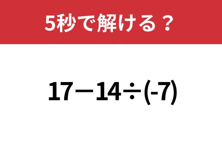 気を抜くのは危険!「17−14÷(-7)」5秒で解ける?