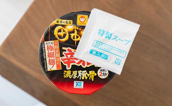 この商品は、東京都足立区に本店をかまえる豚骨ラーメンの名店「博多長浜らーめん 田中商店」が監修したカップラーメンです。