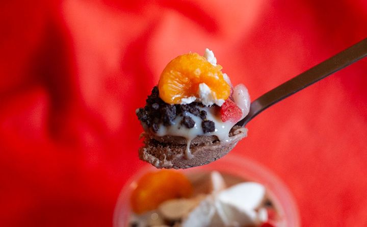 この商品は、チョコソース入りのチョコ氷をベースに、バニラフロートやみかん、いちご、焼きチョコをトッピングした贅沢な一品。濃厚なチョコと爽やかなフルーツの調和、「しろくま」ならではの満足感を楽しめるのだとか。