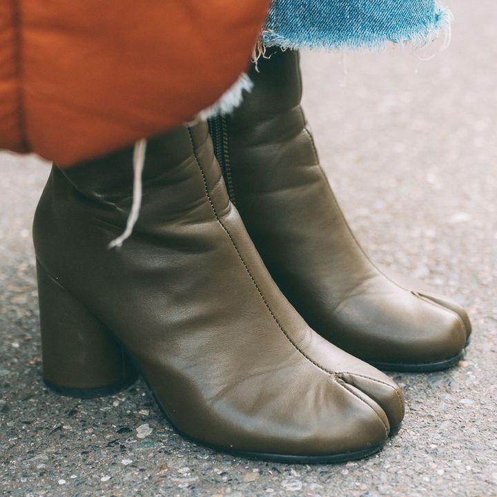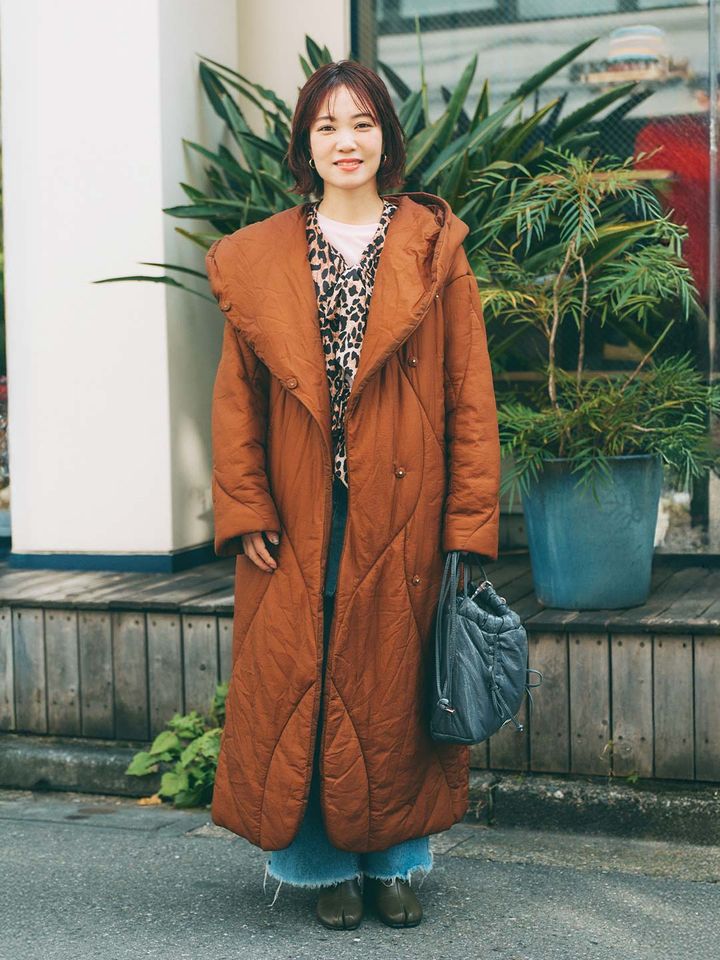 足袋シューズで、モードな足元に昇華! ボリューミーなアウターもぐっと引き締まるアイテム。