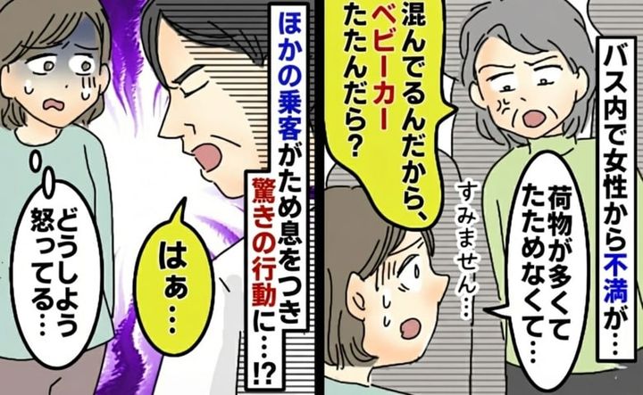 「混んでるんだからベビーカーは畳むべき!」バスの中で見知らぬ女性に怒られた私。すると目の前の男性が、驚く行動に!