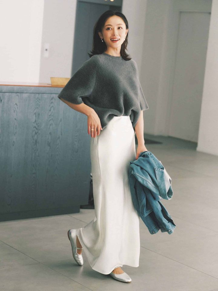 ジレ¥5,980スカート¥5,980(ともにベベッド)カットソー¥11,000(カデュネ/カデュネ プレスルーム)バッグ¥14,300(アルテミス by ダイアナ/アルテミス by ダイアナ アーバンドック ららぽーと豊洲店)シューズ¥26,400(ツル バイマリコ オイカワ)ピアス¥38,500(プラウ)ブレスレット¥19,800(ワンエーアールバイウノアエレ/ウノアエレ ジャパン)