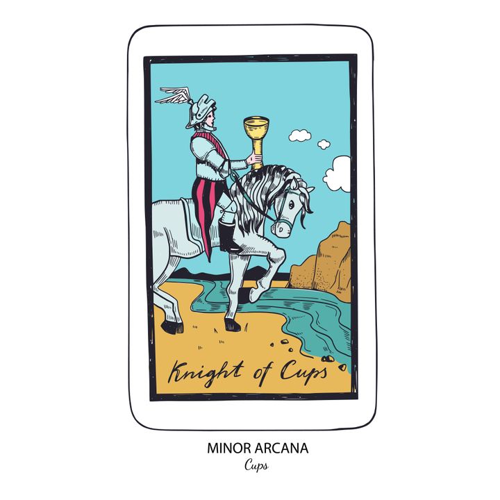 「カップのナイト」は優しくロマンチックで、理想や夢を追いかける、礼儀正しい人物を象徴するカード。 The Wild Sun / Getty Images