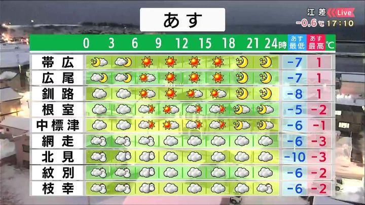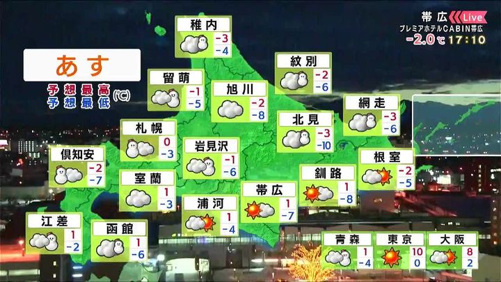 背景は30日午後5時ごろの帯広情報カメラ
