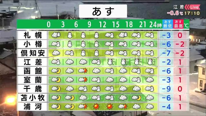 ・あすの札幌の朝昼晩の天気
