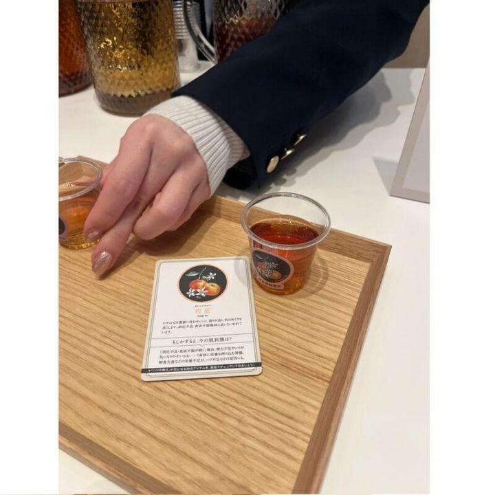 私が選んだのは橙茶(オレンジティー)。選んだお茶それぞれに今の肌状態が詳しく書かれたカードがもらえます!自分では気づけなかった肌の状態がわかって思わずドキッとする内容でした。裏面には今の肌に合わせたオススメ商品の紹介もあります。