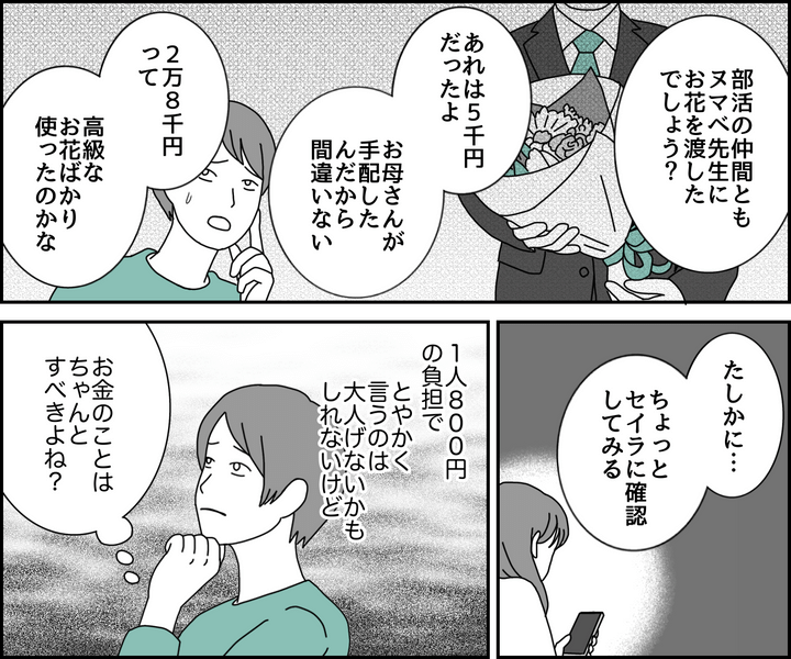 <プレゼント代は2万8千円>1人800円。担任へのプレゼントは収支報告ナシ!モヤ…【まんが】