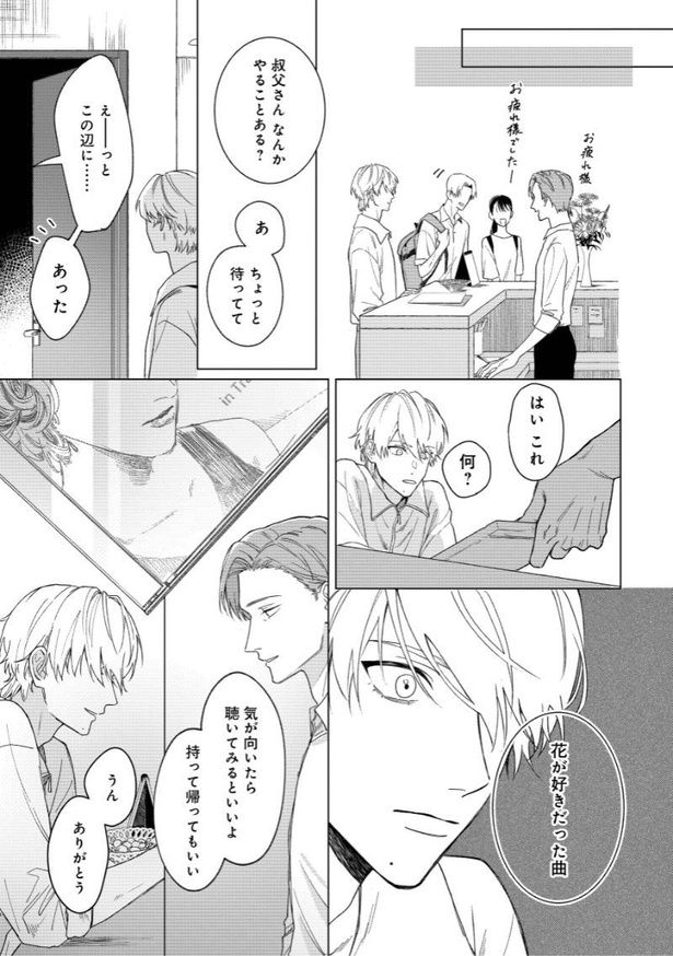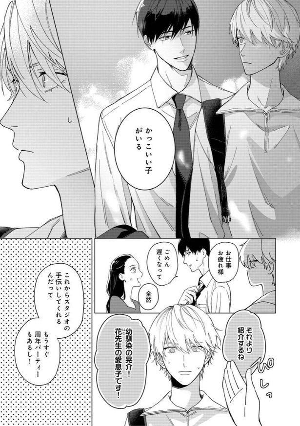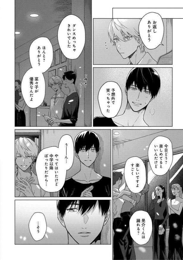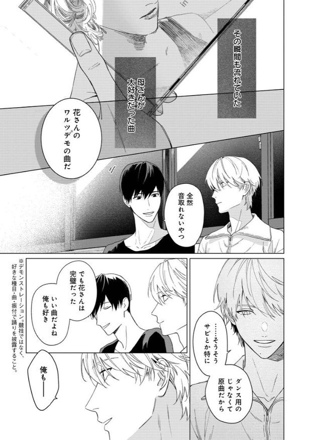 母の遺したダンススタジオで晃介が出会ったのは、大人の余裕と色気を兼ね備えたアラサーの淳。社会人と大学生。異性愛者の同性同士。恋愛には発展しなさそうな二人なのに、社交ダンスをきっかけに、晃介は淳に憧れを抱いてしまう。淳は晃介を優しく気にかけ、二人の距離は縮まっていくが、亡くなった母とそっくりの顔を持つ晃介は、淳は自分の母に惹かれていた可能性があるかもしれないということに気が付き…。商業BLの祭典「BLアワード2026」にノミネート! 初めてを知るばかりの恋を花束のように抱きしめる、春めく“歳の差ラブ”の行方をお楽しみください。