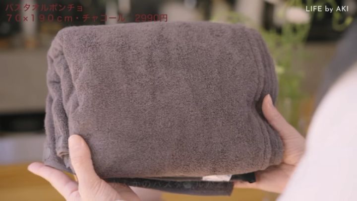 お風呂上りは、子どもの体を拭いたり保湿したりと、なかなか自分の服を着られないというママも多いのでは?そんなときにはこの「バスタオルポンチョ」をサッと羽織ればOK♪湯冷め防止にも役立ちます。身長154cmのakiさんが羽織ると、ひざより少し上くらいの長さだそう。適度な厚みがありますが、タオル地なので乾きやすく、日常使いもしやすい!冬場のお風呂上がりの心強い味方になってくれそうですね。