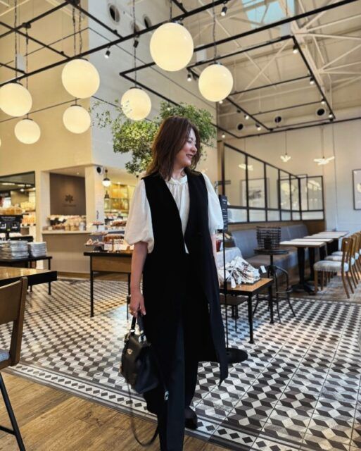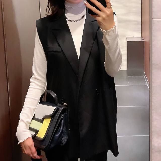 おしゃれさんから支持を集めている「黒ロングジレ」は卒業式にも使えます! オケージョンらしさを高めるため、クリーンな生地&デザインを選ぶのがコツ。体型カバーしながらスタイリッシュなコーデに決まります。