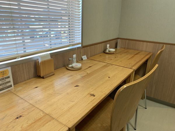 こぢんまりとしてアットホームな雰囲気の2階イートインスペース。 テーブル席はほぼ満席です。