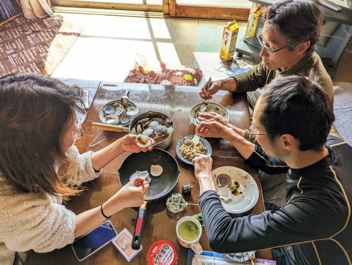 「規格外のホタテをいただいて、みんなで殻むき。10年分くらいのホタテを食べました(笑)」